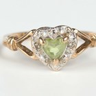 A gold, platinum, diamond and synthetic sapphire three stone ring, detailed ‘18ct & Plat’, weight 2.4g, ring size approx O, an 18ct gold and diamond single stone ring, mounted with a circular cut diamond, weight 2g, and a 9ct gold, peridot and diamond heart shaped ring, weight 2g.