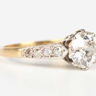 A gold and diamond ring, claw set with the principal old cut diamond between diamond set four stones shoulders, detailed ‘18ct’, weight 4.2g, principal diamond weight approx 2.10ct, ring size approx R.