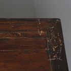 A Chinese stained softwood low table, raised on block legs, height 40cm, length 91cm, depth 50cm.