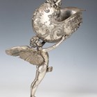 Franz von Stuck - a late 19th century German plated cast alloy nautilus cup, attributed to WMF, finely cast as the standing Cupid supporting a large nautilus cup surmounted by another cherub, raised on a tortoise base, bearing 'EP' stamp to underside, height 47cm. Note: Von Ostini records that the Nautilus was one of the first sculptural works created by Stuck, pre-dating the Glaspalast exhibition in Munich in 1892 (when he displayed the famous Athlet) and finding its origins in two illustrations that Stuck designed in the 1880s: firstly a drawing for the Allegorien und Embleme portfolio, published by Gerlach & Schenk, Vienna 1882/84, vol. 2, no. 82; and secondly for a calendar illustration for the month of October, published in the Fliegende Blatter, 1889, no. 2306. Stuck himself owned a bronze version of the present model, which mounted a real nautilus shell and appears as a prop in some of his paintings. It stood on his living-room cabinet until 1909 (see Bierbaum, op. cit., p. 79).