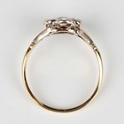 A gold and diamond seven stone cluster ring, mounted with cushion cut diamonds between split shoulders, indistinct mark, weight 2g, ring size approx O1/2.