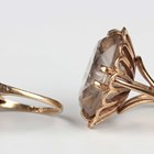 A 9ct gold and amethyst cluster ring, mounted with the principal oval cut amethyst to the centre, London 1972, ring size approx L1/2, a 9ct gold and pale smoky quartz single stone ring, total weight 10.9g, and a seed pearl pendant cross.