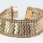 A three colour gold bracelet in a serpentine link design between chainwork sides, on a snap clasp, detailed ‘750’, weight 33.1g, length 17.5cm.