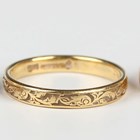 An 18ct gold wedding ring with foliate scroll decoration, ring size approx K1/2, a gold ring, pierced in a Greek key pattern design, detailed ‘750’, total weight 4.7g, and a 9ct gold signet ring, initial engraved, London 1966, weight 2.6g.