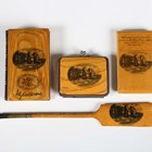 Four pieces of 19th century Mauchline ware, 'Made from Tree Felled by The Right Hon W.E. Gladstone', comprising Common Prayer book, purse, card case and quill pen.