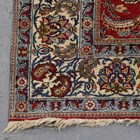 A fine Esfahan rug, Central Persia, early 20th century, the claret field with a flowerhead medallion supported by palmettes and leaves, within an ivory palmette and vine border, 209cm x 142cm.
