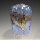 A Wedgwood ordinary lustre vase, 1920s, designed by Daisy Makeig-Jones, decorated in gilt with a dragon, flaming pearl and vapours against a pale blue ground, pattern No. Z4829, gilt printed, painted and incised marks to base, height 21cm.