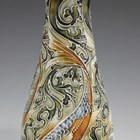 A Royal Doulton stoneware vase, decorated by Mark V. Marshall, monogrammed, with fish amidst scrolling green foliage, impressed and incised marks to base, height 30.5cm.