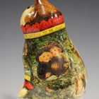 A Joan and David De Bethel Rye Pottery Christmas cat, dated 1995, with découpage figures against a painted landscape, the collar inscribed ‘Bake the cake and pick the holly...’, set with glass eyes, blue painted marks to base with numerals '4062', height 18cm.