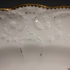 A Nantgarw porcelain oval dish, circa 1818-20, probably painted in London, with central floral bouquet beneath a gilt dentil edged rim, moulded in low relief with flowers, scrolls and ribbons reserved with a painted bird, flowers and fruit, impressed 'NANT GARW C.W' to base, length 30cm.
