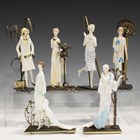 A set of six Albany bone china and bronze figures, each depicting a 1920s woman, comprising Montmartre, Windsor, Manhattan, Charleston, Monaco and Ritz, height of tallest 23cm, together with an Albany brochure, dated 1991.
