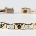 A two colour gold, sapphire and diamond bracelet, collet set with circular cut sapphires alternating with circular cut diamonds, on a snap clasp, detailed ‘14K’, weight 12.2g, length 19cm.