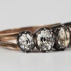 A Georgian silver set and paste ring, mounted with a row of five foil-backed oval pastes, unmarked, weight 2.6g, ring size approx L (split to shoulder).