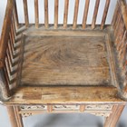 A pair of 19th century provincial Chinese elm comb back armchairs with panelled seats and carved foliate frieze panels, height 97cm, width 54cm, depth 43cm.
