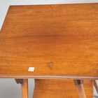 A Victorian mahogany wall bracket with a finely carved foliate terminal, height 20cm, width 28cm, depth 20cm, together with another similar wall bracket and two Edwardian occasional tables.