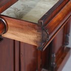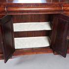 A William IV mahogany sideboard with central mirror back flanked by carved scroll panels, height 124cm, width 154cm, depth 50cm.