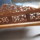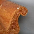 A late 20th century Eastern hardwood daybed with a carved foliate back and scroll ends, height 110cm, width 225cm, depth 90cm.