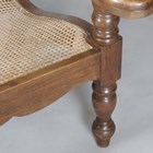 A 20th century Eastern hardwood plantation style armchair with a caned seat and back, height 103cm, width 79cm, depth 107cm.