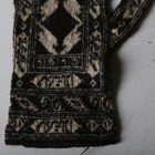 An unusual pair of Persian wool gloves, finely woven in black and white with panels of Islamic script, length 25cm.