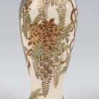 A Japanese Satsuma earthenware miniature vase by Kinkozan, Meiji period, of slender baluster form, painted and gilt with wisteria and butterflies, gilt and iron red signature to base, height 6cm.