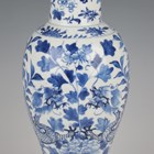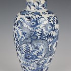 A group of six Chinese blue and white porcelain vases and covers, late 19th century, each of baluster form, painted with dragons amidst peony or vapours, heights ranging from 38cm to 27cm (faults).