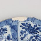 A Chinese blue and white export porcelain circular dish, Qianlong period, painted with a fenced peony garden within a rim of lotus sprays, diameter 37.8cm (restoration to rim), together with a blue and white porcelain plate, Kangxi period, painted with flowers, diameter 22cm (faults). Provenance: from the private collection of David Armitage, former conservator to the Department of Eastern Art at the Ashmolean Museum, Oxford, between 1970 and 1999.