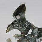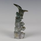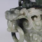 A group of five Chinese jadeite carvings, 20th century and later, comprising two jars and covers, heights 18.5cm and 17.2cm (one handle damaged), a tripod censer and cover with dragon finial and handles, height 10.5cm, a figure group of an eagle, snake and rabbit, height 11.2cm, and a Tang style war horse, height 11.9cm.