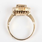 A gold, emerald and diamond cluster ring, collet set with the cut cornered square cut emerald within a surround of circular cut diamonds, unmarked, weight 6.9g, emerald weight approx 2.00ct, ring size approx R.