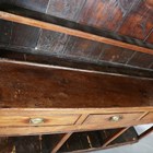 A George III provincial mahogany dresser, the plate rack above three drawers and chamfered supports united by a pine boarded pot shelf, height 196cm, width 176cm, depth 41cm.