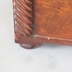 A Victorian mahogany bowfront chest of drawers with reeded pilasters and squat bun feet, height 95cm, width 115cm, depth 49cm.
