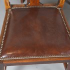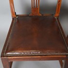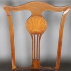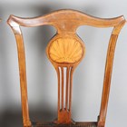 A set of eight Edwardian mahogany pierced splat back dining chairs, the backs inlaid with scallop shells, comprising two carvers, height 100cm, width 66cm, and six standards, together with a 20th century mahogany twin pedestal dining table, extended length 201cm, depth 99cm.