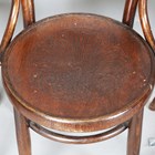 A set of four late 19th/early 20th century Thonet style bentwood bistro chairs with foliate decorated plywood seats, height 88cm, width 42cm.