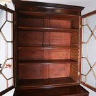 A good George III figured mahogany narrow secrétaire bookcase cabinet, the glazed top above a secrétaire drawer and three further drawers, on bracket feet, height 213cm, width 99cm, depth 55cm.