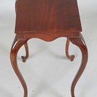 A George III Sheraton period mahogany kettle stand, the frieze fitted with two slides, raised on slender cabriole legs, height 58cm, width 42cm, depth 31cm.