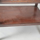 A late Victorian Aesthetic Movement mahogany tea table, fitted with a drop-leaf section to each side, all finely incised with foliage, height 74cm, width 53cm, depth 37cm.