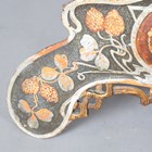 A French Art Nouveau silvered and painted dressing table mirror of shaped outline, decorated with trailing leaves, flowerheads and fruit, the apron painted with central portrait, height 75cm, width 51cm.