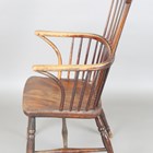 A late 19th century provincial ash and elm Windsor armchair with bar and stick back, height 111cm, width 60cm, depth 52cm.