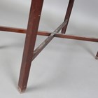 A George III mahogany Pembroke table with a single frieze drawer and 'X' frame stretcher, height 71cm, length 79cm, depth 90cm.