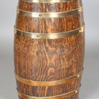 A late 19th century coopered oak barrel stick stand with six applied brass straps, height 63cm, width 33cm, depth 24cm.