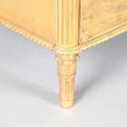 An early 20th century French gilt painted bowfront five-drawer commode, inset with a later top, height 85cm, width 125cm, depth 65cm.