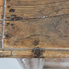 A 17th century oak panelled coffer, the lid with original wire hinges, height 71cm, width 125cm, depth 51cm (some repairs).