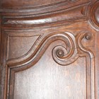 A 19th century French oak side cabinet with an arched pediment and four carved panel doors, height 236cm, width 133cm, depth 51cm.