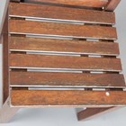 A 20th century stained teak rectangular garden table by Bridgeman, height 74cm, length 181cm, depth 90cm, together with a set of five matching chairs, comprising two carvers and three standards.