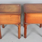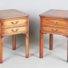 A pair of late 20th century mahogany bedside tables with canted tops and two drawers, height 61cm, width 47cm, depth 47cm.