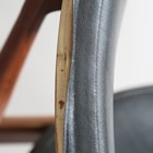 A set of six mid-20th century G-Plan teak framed dining chairs with black leatherette seat and back pads, height 76cm, width 49cm, depth 52cm.
