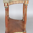 An early 20th century French Neoclassical Revival mahogany and gilt metal mounted side table with an inset alabaster top, height 82cm, width 59cm, depth 35cm.