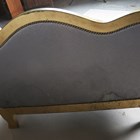 A late 20th century giltwood showframe settee, upholstered in grey foliate patterned silk, height 93cm, width 150cm, depth 64cm.