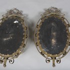 A pair of Edwardian gilt brass twin-light girandole wall mirrors, height 51cm, width 30cm.