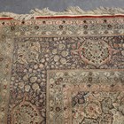 A fine Kashmir part silk carpet, late 20th century, the red field with a large flowerhead medallion, profusely supported by palmettes and dense foliage, within a complimentary border, 418cm x 306cm.