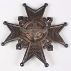 A French silver cruciform breast star of the Order of St Esprit, a French silver Decoration of the Lily, a French silver, blue and white enamelled order, detailed ‘Vive Henri IV and ‘Vive Le Roi’, and a gilt filigree cruciform brooch badge, with an associated case.